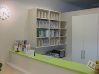 江北ファミリー歯科の受付になります。お気軽にお越しください。